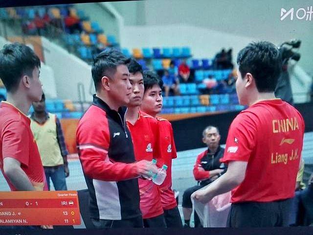梁靖昆的对手是伊朗队的阿拉米扬,这位选手有个外号叫“摸鞋哥”,因为他比赛时总喜欢摸鞋、摸球台,小动作特别多。
