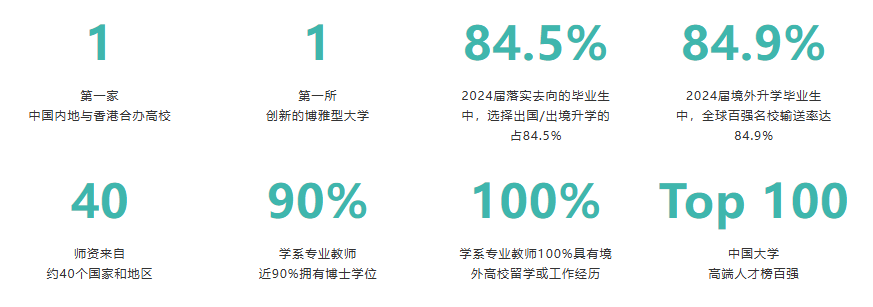 近年来,本科毕业生逾八成选择深造,选择深造的毕业生逾八成进入全球前百强大学。大多数深造毕业生学成归国,服务粤港澳大湾区和国家发展。就业毕业生广受世界500强企业、政府机构等单位的认可;创业毕业生中有人入选福布斯30岁以下精英榜、胡润U35中国创业先锋等;亦有毕业生投身于公益事业,在社会服务中发光发热。