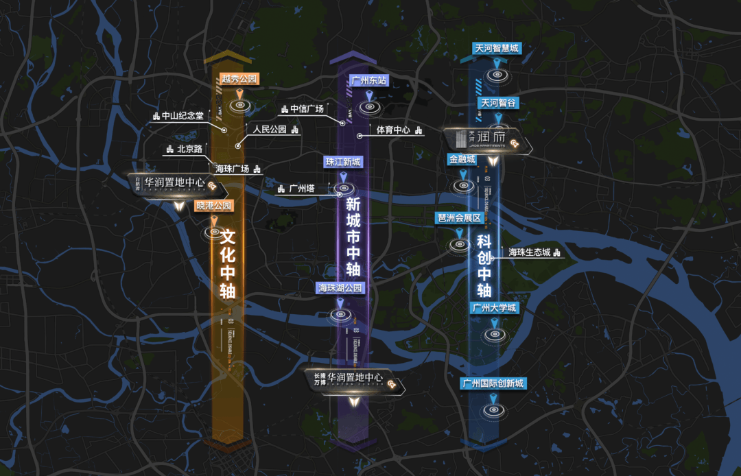 2013年,华润置地带着经验入驻广州,将多元业态与城市发展进行整合,并随规划先后布局三大中轴,助力广州城市格局升维