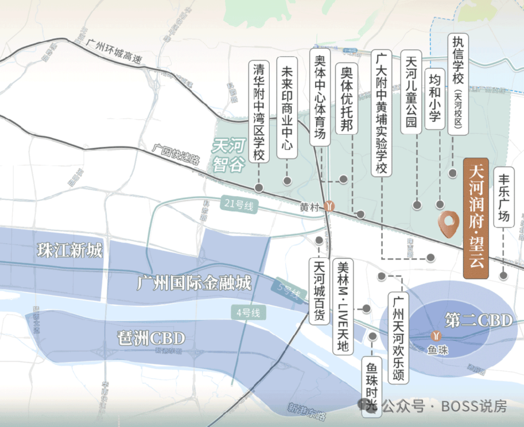 配建9班制公立幼儿园(2026年9月开学),对口体育东教育集团均和小学,配建48班品牌初中(2026年9月开学),正式引进天河外国语教育集团办学