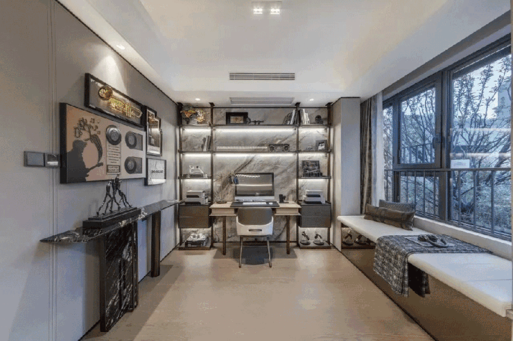 尺度震撼:宽厅面宽约5.5米,3.5开间面宽共约11.5米,再加上约8㎡的阳台,使得整个家庭的公共区域尺度感十足、功能也更加灵活多变。