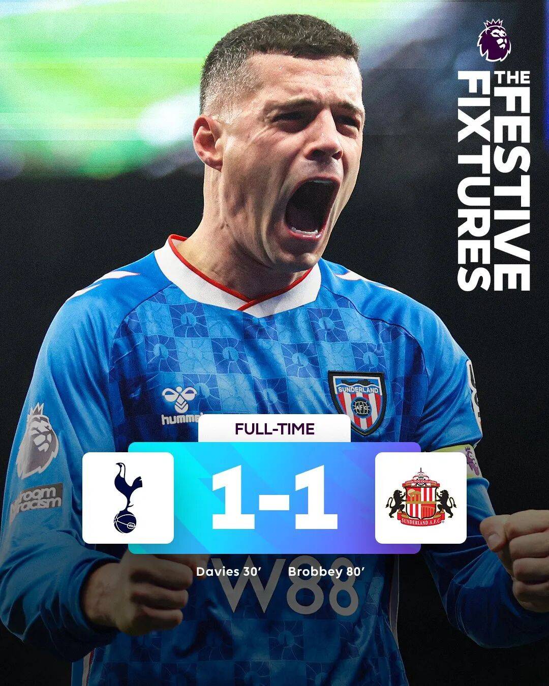 热刺主场迎战升班马桑德兰,上半场,库杜斯因伤离场,穆阿尼替补出战,随后,本-戴维斯破门得分,帮助主队领先。