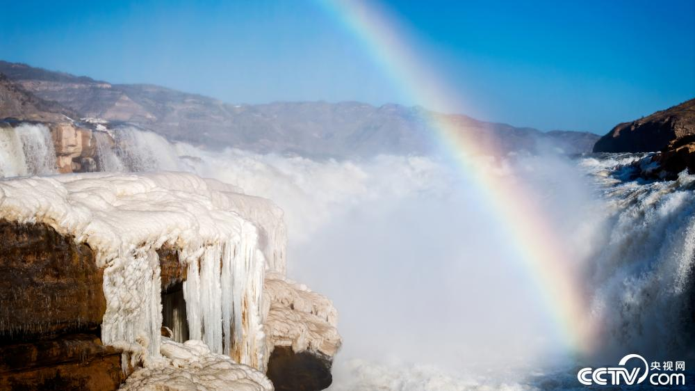 近日,位于山西吉县和陕西宜川县交界的黄河壶口瀑布出现“玉壶冰瀑”壮美景观,在冬日暖阳的照射下,洁白如玉的冰棱,晶莹剔透,与奔腾的河水相互映衬,构成一幅“黄河之水天上来”的冬日画卷。