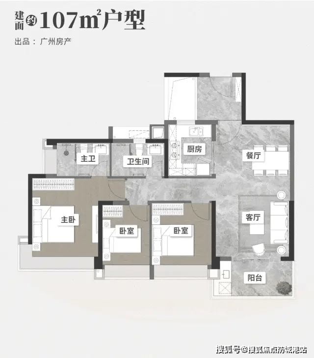 95㎡三房两厅两卫:南向布局,采光充足,客厅面宽 3.6m,主卧面积 13.5㎡,带独立卫生间与飘窗,双阳台设计,兼顾观景与实用,适合刚需家庭;