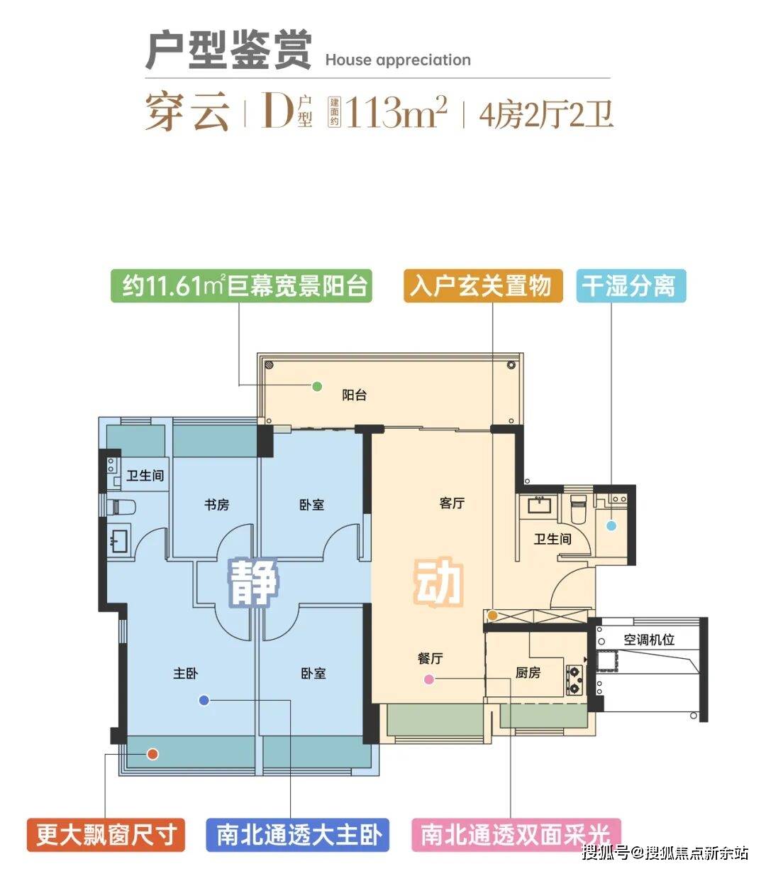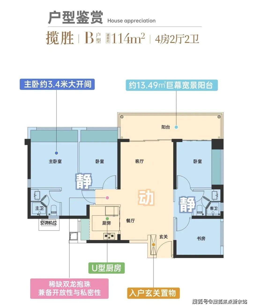 ,拥有极强的尺度感。约13.5平景观阳台,约3.4米大开间主卧套房...