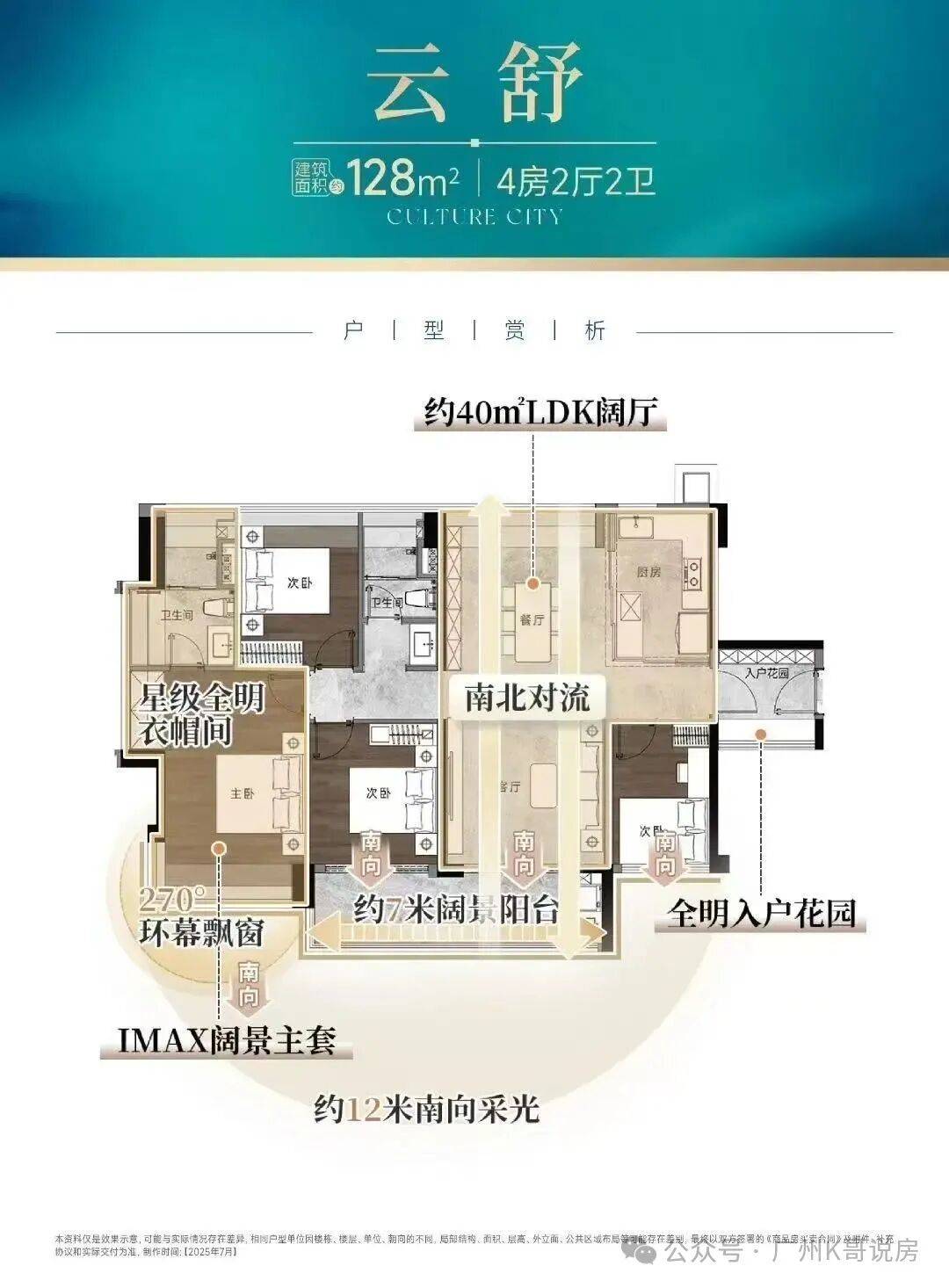 建面约128㎡的四房,则做到约16米南向采光、南北对流,且拥有一个约40㎡LDK阔厅,碾压市场同面积产品。