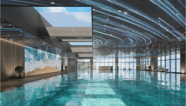 在这里,中鼎大手笔植入了「星幕奢顶泳池」、「行云书院」、「森境咖啡吧」、「全龄健身馆」、「瑰丽花艺SHOP」、「高定私宴」等丰富场景,为业主构筑专属美学文化社交场域。
