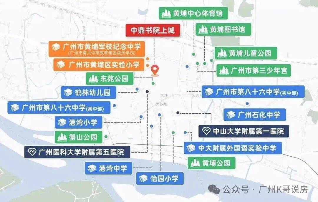 除了自配幼儿园,项目还对口广州市黄埔区实验小学、广州市黄埔军校纪念中学(广州市第六中学教育集团成员校),打通12年优质教育。